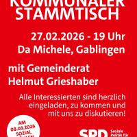 Der nächste „Kommunale Stammtisch“ unter dem Motto „MITEINANDER – sprechen – diskutieren - der Gablinger SPD wird Anfang nächsten Jahres im Bürgerhaus in der Gablinger Siedlung stattfinden und der genaue Zeitpunkt rechtzeitig bekanntgegeben.