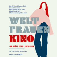 Die SPD Gablingen freut sich zum diesjährigen internationalen Frauentag wieder zu einem Filmabend mit einem Überraschungsfilm in das Pfarrheim Gablingen einzuladen.